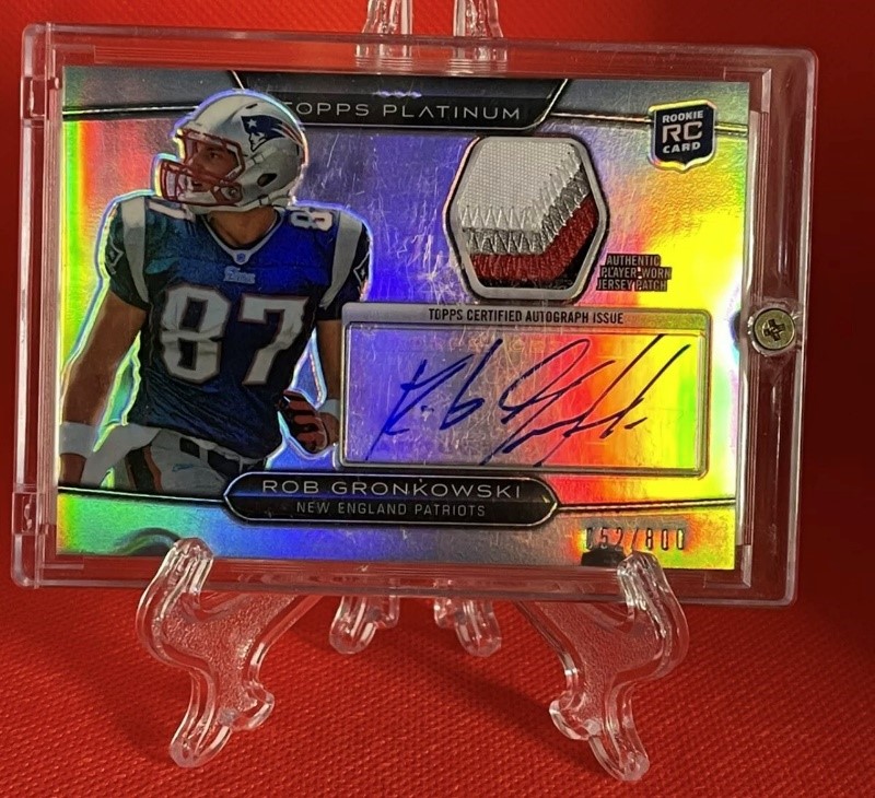 I know he’s gone but I would be kicking myself for not sharing Rob Gronkowski’s 2010 Topps Platinum Rookie Auto Patch that’s numbered to 800. I never got it graded. But I loved Gronk and loved the fact that the jersey patch was a four-color patch with his autograph. I have no idea what the future holds for him but I know this card was a personal favorite of mine!