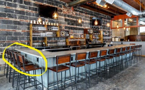 This is Charlestown’s newest bar and the one that’s closest in distance to me (right around the corner)! It’s a pretty small bar, but if I was able to pick where I sat, it would be at the three chairs I circled above. The entrance is kind of right at the corner of the bar, so I don’t love being there. The seats to the far left and just too tucked in for my liking, and the very last seat on the right is next to a walk-thru for bartenders and servers. BTW, shout-out to Gil at the bar who makes a great espresso martini!