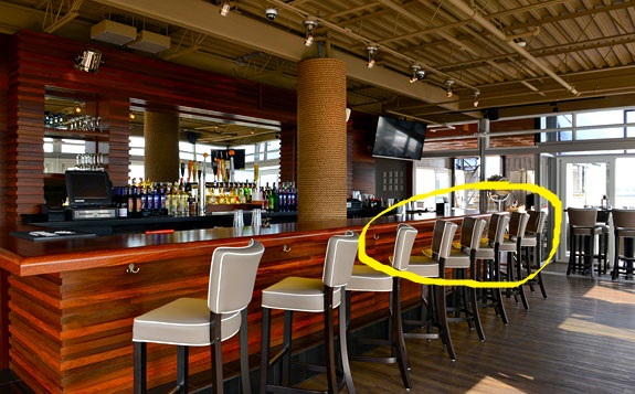 There’s really not a bad spot at Pier 6, especially when it’s nice out and you can either sit outside, or inside with the windows open. So I would honestly first suggest trying to get a table on the right, but if the bar is your preference, or only option, I’d say it’s one of these circled. **Disclaimer: this does not include the downstairs bar, or the back deck area**